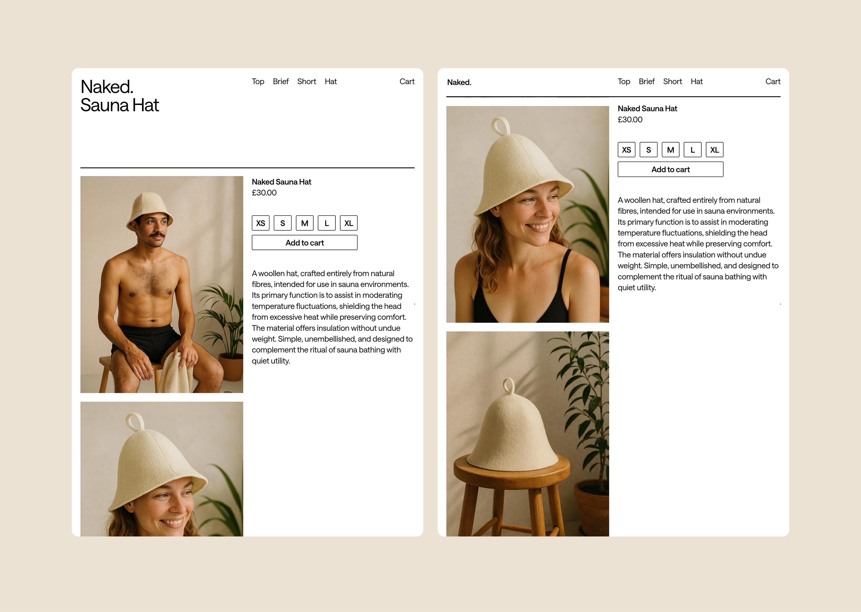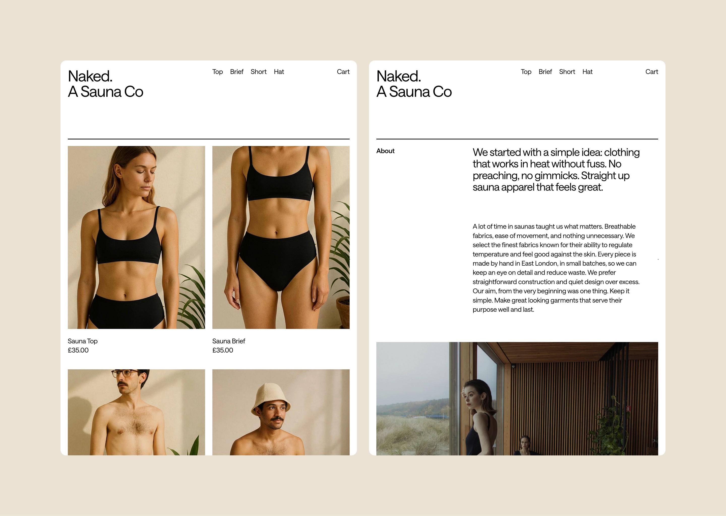 Naked by name, naked by nature. A sauna apparel company dedicated to simplicity, functionality and beauty. From a small, London based studio, they're crafting outstanding products made to enhance the sauna experience.